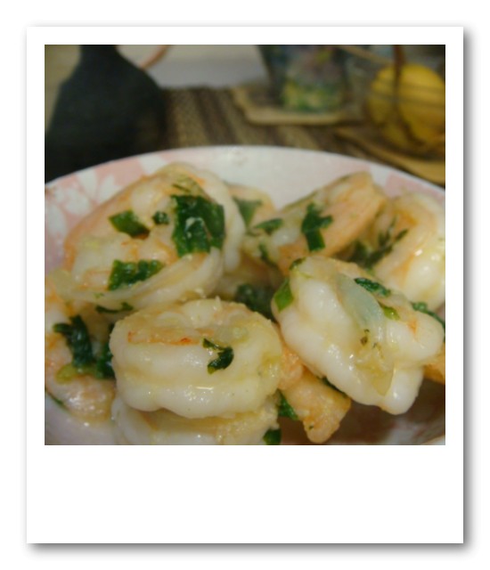 材料は、海老、ニラ、パクチー、ごま油、レモンがオリジナルレシピで、私はニンニクラバーですので、ニンニクもたっぷり入れてみました。